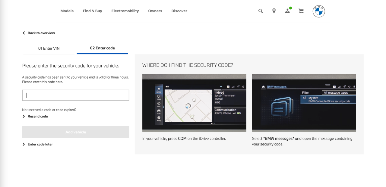 Kad se unese VIN u mobile app on prepozna auto i model i posalje confirmation code koji treba da stigne u Connected Drive / Messages / Inbox, ali kad udjem tamo izbacuje mi da auto ne moze da se poveze na mrezu. Ima par poruka od ranije u tom inboxu sto znaci da to radi. Verovatno kad je prethodni vlasnik isao do Italije, pa se auto tamo povezivao na mrezu posto valjda Srbija nije podrzana. Prevrteo sam pola interneta ali nisam nista pametno nasao. Probao sam da podelim internet sa telefona i kad je povezan blututom i kad je povezan usb kablom. Bezuspesno.