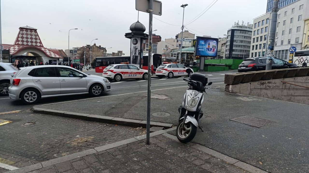 Malo pre gledah kako dva komunalna policajca fotografišu ovaj skuter i čujem da "pišu mu prijavu" za nepropisno parkiranje.