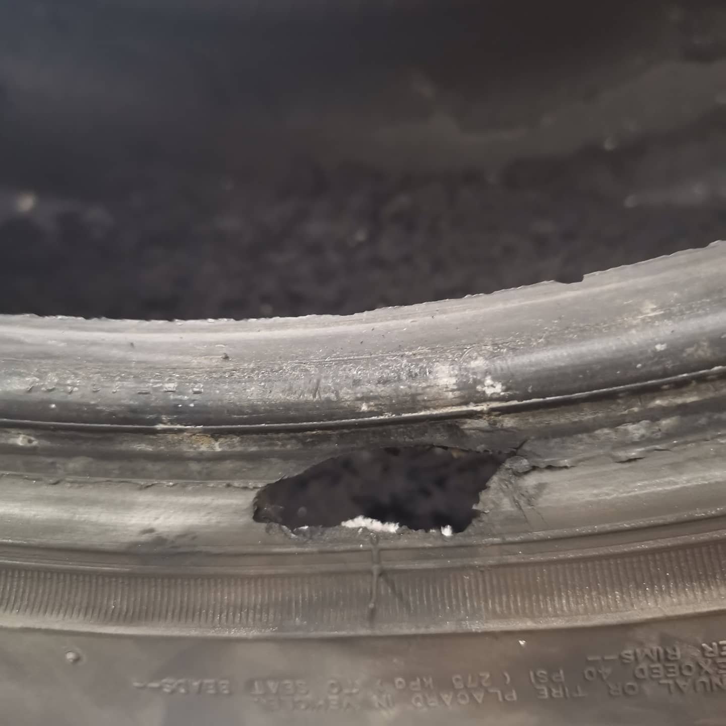 U ovom slučaju je opasni problem bio zaklonjen od običnog pregleda. Ozbiljno pucanje boka gume sa unutrašnje strane, koje se nije moglo uočiti spolja.