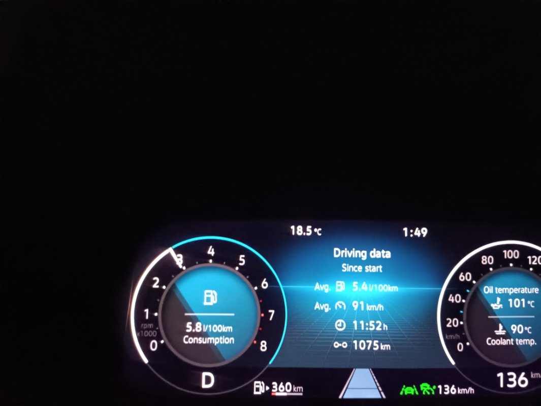 На борду пише да је укупна потрошња (Trip 1, претпостављам од почетка употребе?), 5,7 l/100km. Знам да је први власник живео у малом месту и да га је највише возио по регионалним и осталим путевима, а далеко мање по граду, тако да се та потрошња уклапа у општи профил. Ствар је у томе да ја живим у Београду (брдо-долина-највише брдо-најдубља долина, па јопет) и што потрошња по борду редовно иде на 10-11L на кратким релацијама (до 5км) скоро сваки дан; клима је наравно укључена 90% времена, али и када је свесно искључим, потрошња не пада богзна колико, практично нимало. На отвореном путу, ситуација је другачија, потрошња пада на 6-7 на ауто-путу и обичном путу и практично није потребно возити преко 2.300 обртаја никада.
