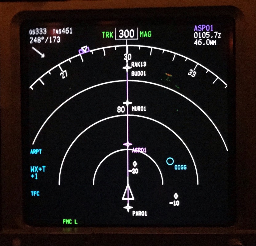 U gornjem levom uglu je Ground speed, true air speed, a ispod njih su pravac/brzina vetra.