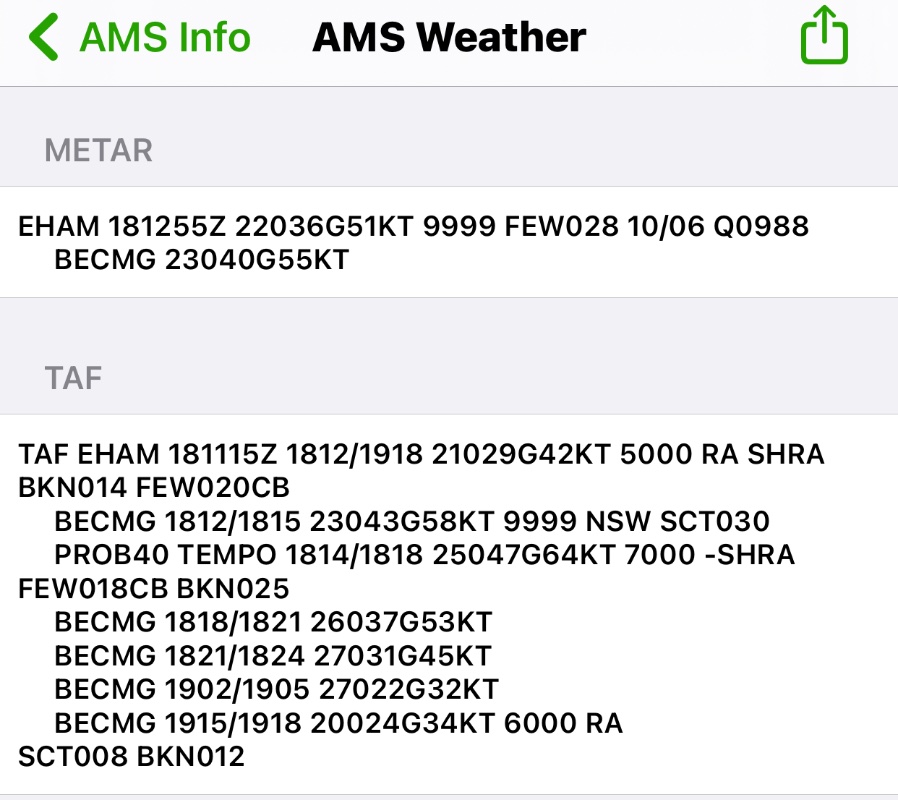 Ovo je prvi sledeci meteo izvestaj nakon sletanja, sto ce reci, kada se vetar razlozi na ceonu i bocnu komponentu, da je imao samo 6,4 cvorova (12 kmh) bocnog vetra koja je na mahove rasla na citavih 8,7 cvorova (16 kmh).