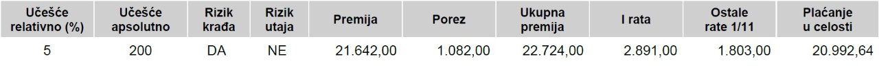 I sad tu imam gotovo istu premiju, ali veću osiguranu sumu i manje učešće.