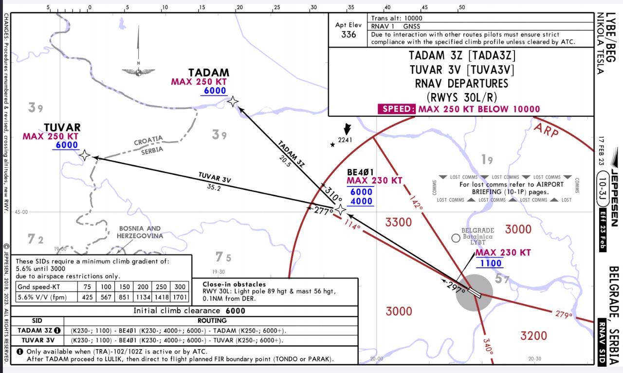 3300 ft (1000m) u pravcu poletanja, u krugu od 25 nautickih milja oko aerodroma: