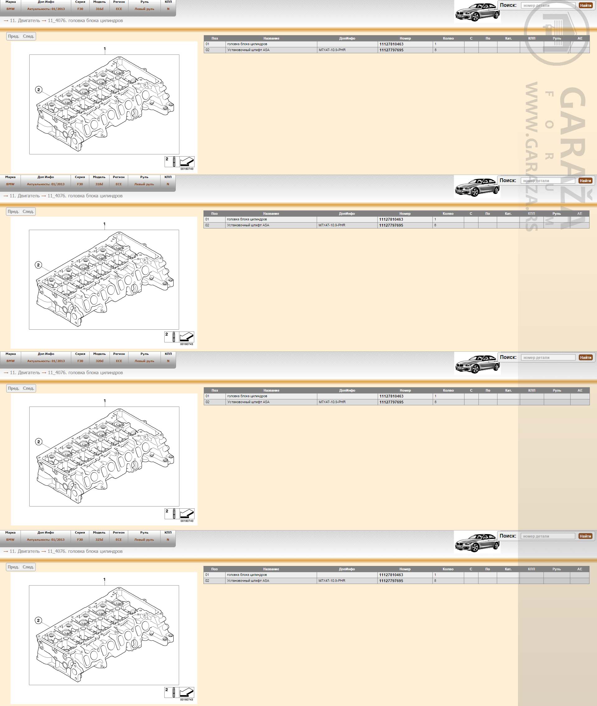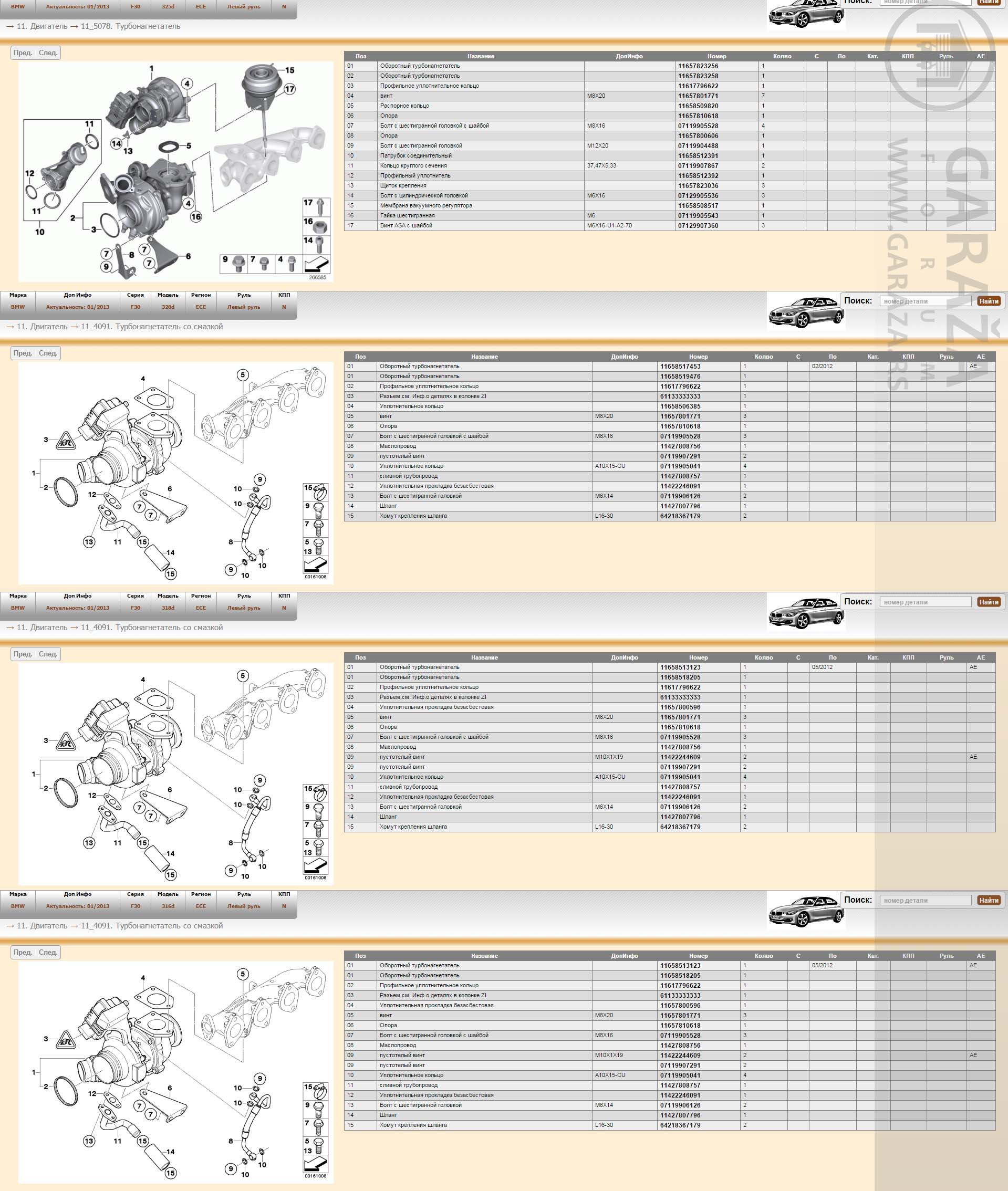 Evo, apropo teme nije me mrzelo da pregledam katalog delova. Odabrao sam F30 BMW, motori 16d 18d 20d i 25d.