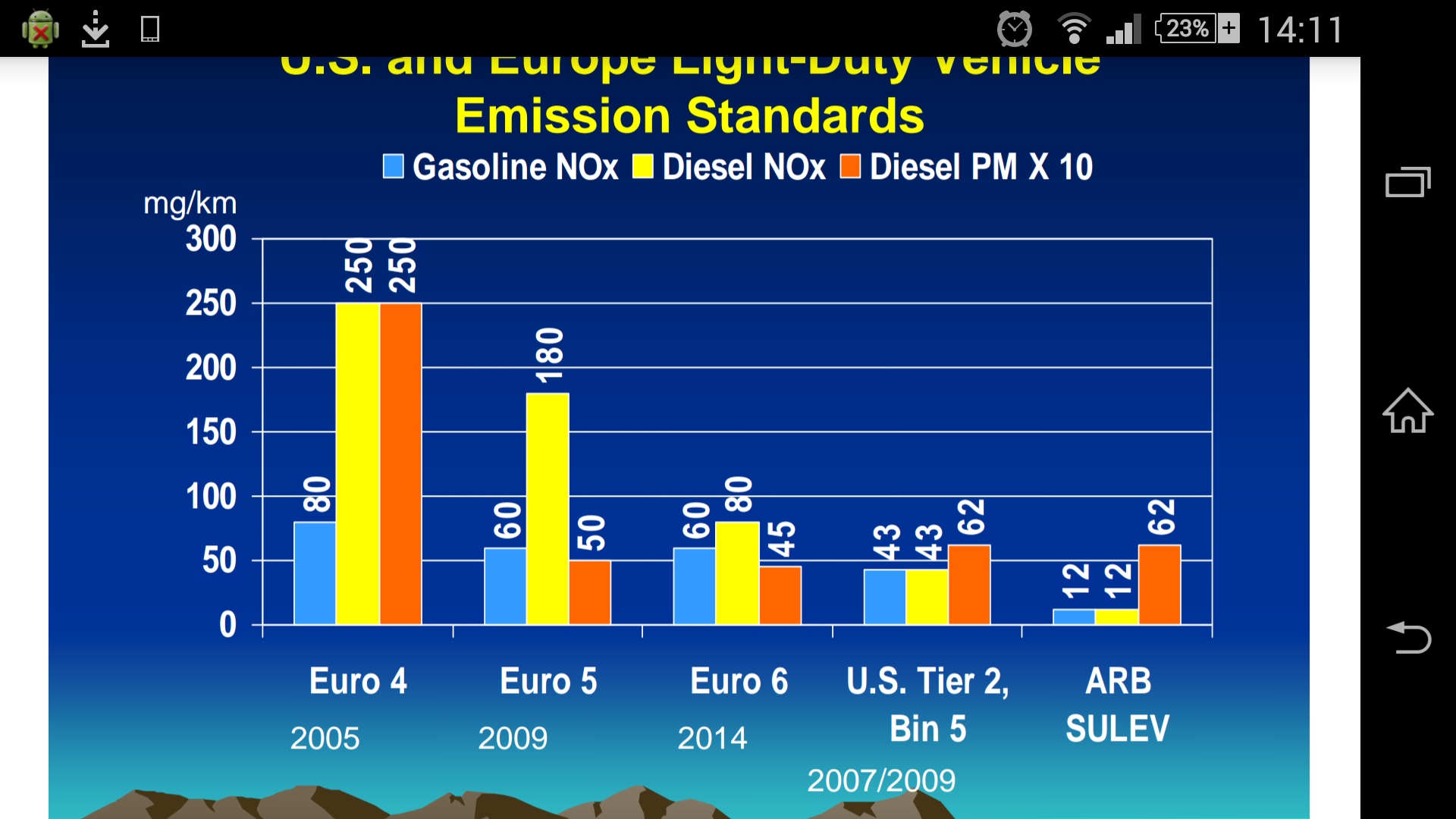 Sto se emisija gasova tice USA standardi su u nekim domenima i strozi nego EU. Npr. NOx za dizel je tamo ispod EU granice. Koliko vidim sad cela Amerika preuzima Kalifornijski standard koji je posebno strog.