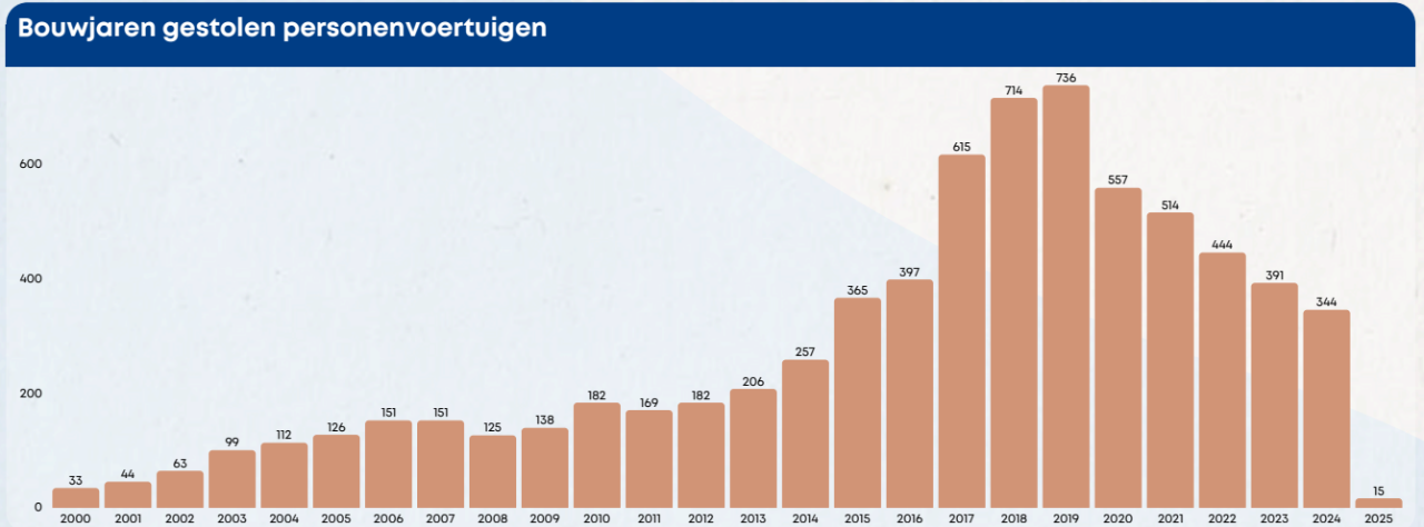 Ukupno je ukradeno 3.645 putničkih automobila, što je povećanje od preko 20 procenata u poređenju sa istim periodom prošle godine. Ajndhoven je zabeležio najviše ukradenih automobila, zatim Amsterdam i Hag.