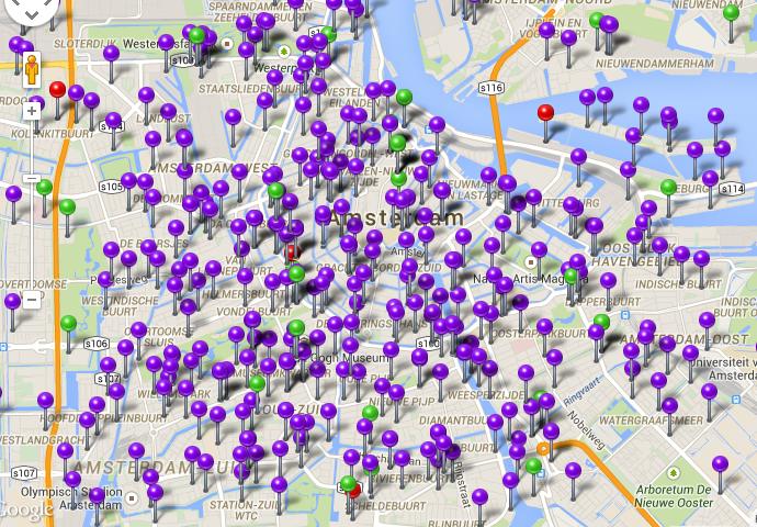 Pa samo mapa Amsterdama, a interesantno je da su svi kompatibilni sa jednom karticom (placanje) i jednim kablom mozes 99% elektricnih automobila da punis. Mojo sestri se Ampera napuni za oko 2h i moze da predje max 80km (na auto putu 50- do 60 a u gradu prelazi vise)