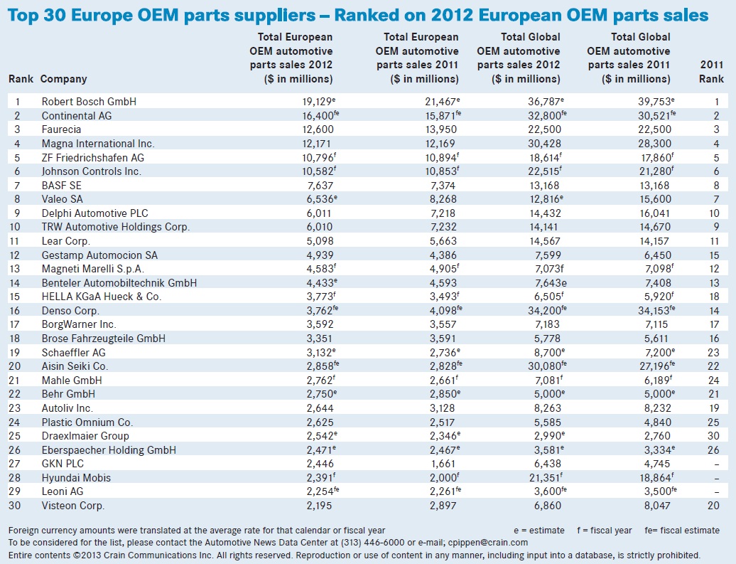 Lista najvecih dobavljaca za evropsko trziste 2012.