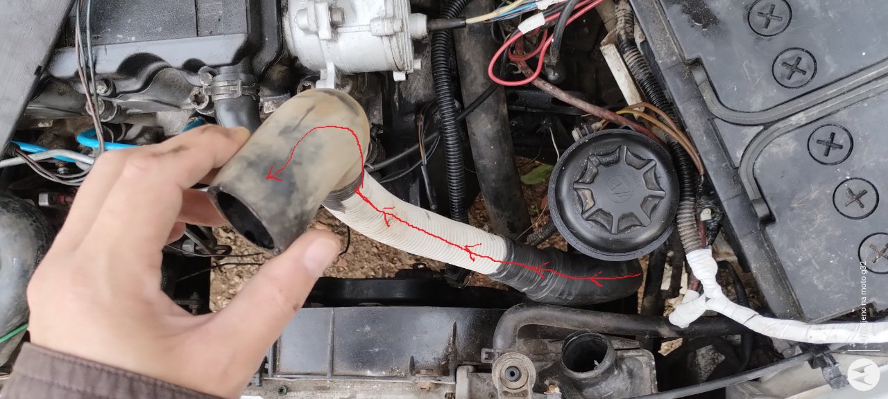 Prvo kupi original crevo za taj auto, nemoj ovako krpljeno da stavljaš. Kad kupiš original, njegov oblik će ti reći gde i kako ga montiraš. Obično na gornji priključak hladnjaka ide crevo koje vodi tečnost iz motora.